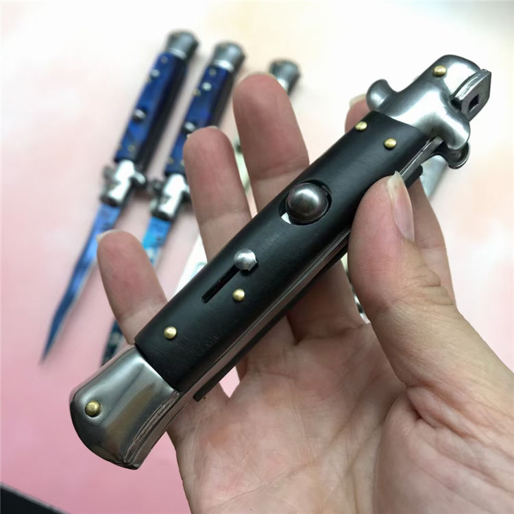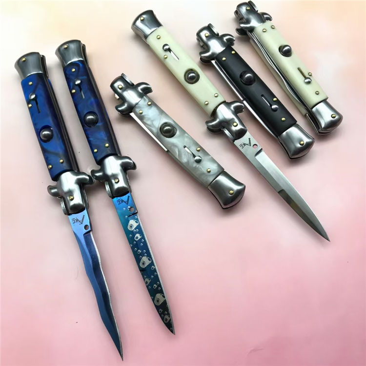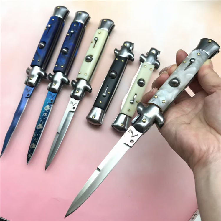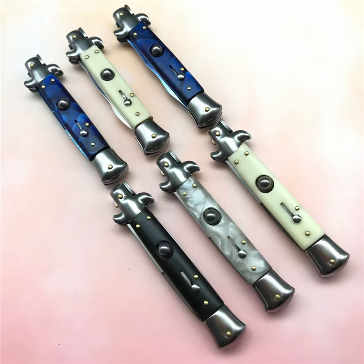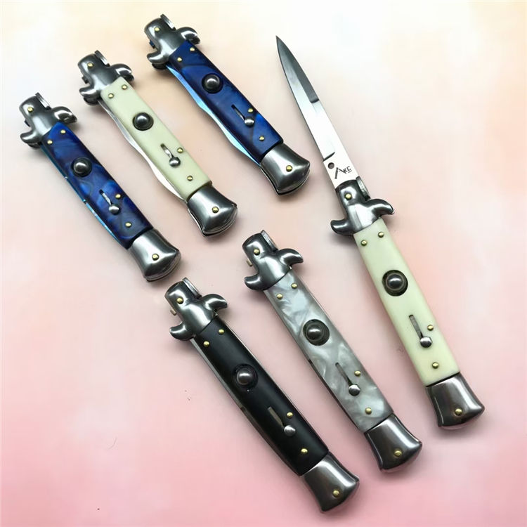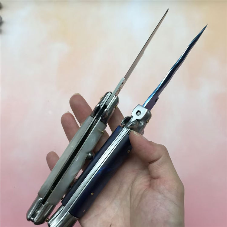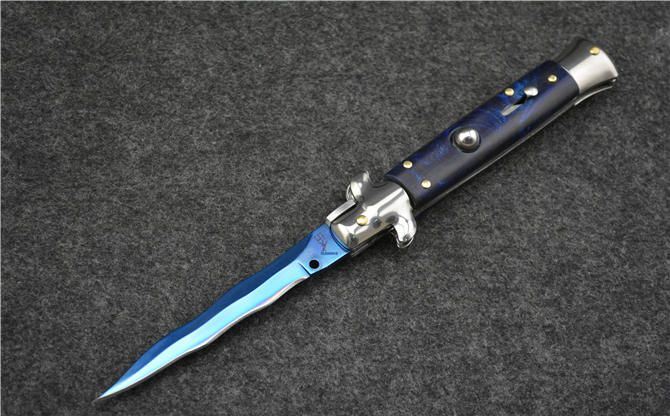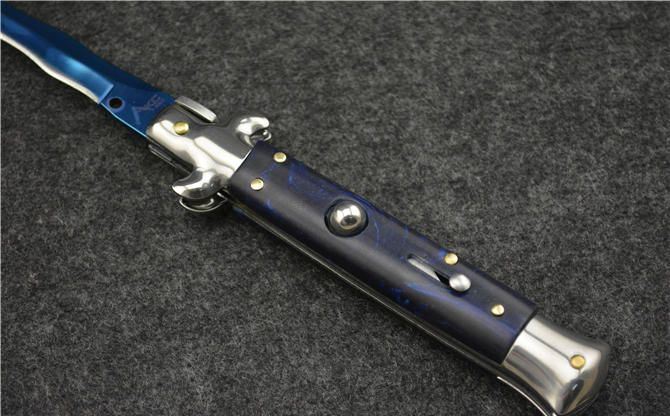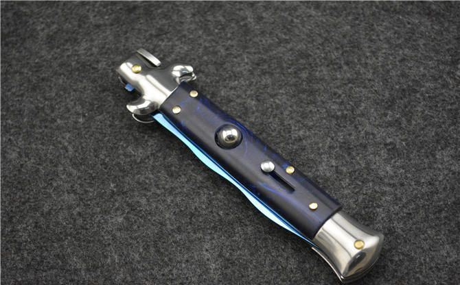 9寸AKC意大利跳刀蓝天(白钢头水波刃)