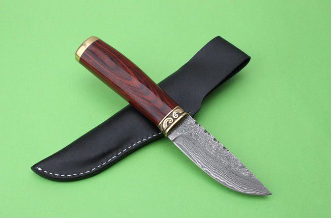 全 长:210mm 刃 长:90mm 柄 长:115mm 刃 宽:28mm 刃 厚:2.5mm 刃 材:大马士革 重 量:150g(含包装) 硬 度:58HRC 表 面:大马士革原纹 柄 材:双铜头+彩木 锁 型:定锁 其 他:配牛皮套