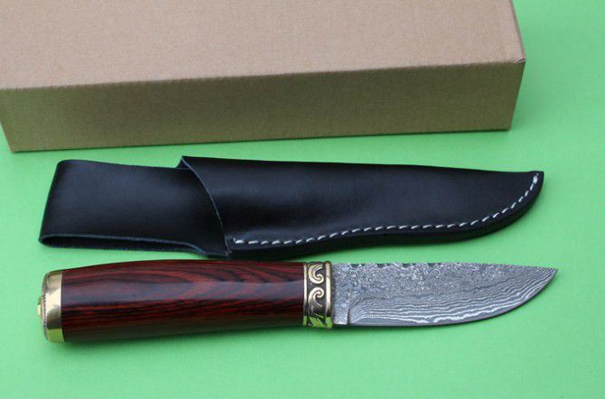 大马士革传说直刀 全 长:210mm 刃 长:90mm 柄 长:115mm 刃 宽:28mm 刃 厚:2.5mm 刃 材:大马士革 重 量:150g(含包装) 硬 度:58HRC 表 面:大马士革原纹 柄 材:双铜头+彩木 锁 型:定锁 其 他:配牛皮套