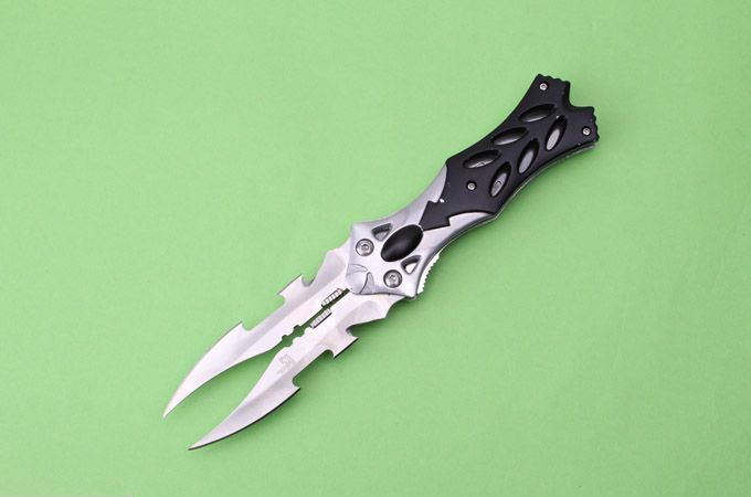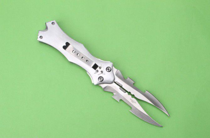 白眉蜈蚣战术折刀 全 长:21cm 刃 长:9cm 刃 厚:2.5mm 刃 材:420A 硬 度:56Hrc 表 面:电泳 柄 材:合金铝 净 重:119g 刀 套:无 锁 定:线锁