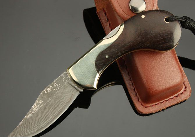大马士革-蜗牛 全 长: 17.5cm 刃 长: 7cm 柄 长:10cm 刃 宽: 2.5cm(最宽处) 硬 度: 59HRC 刃 厚: 0.27cm 净 量: 160克 毛 量:210克 表 面: 纯手工制造 柄 材: 白铜+黑檀木 锁 闭:传统式制尾锁