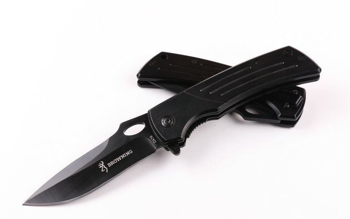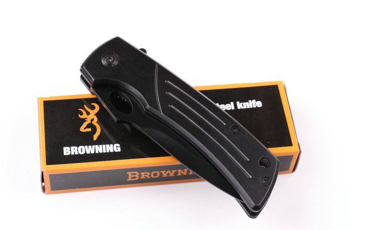 勃朗宁DA79快开折刀 全 长:22.5cm 刃 长:9.6cm 刃 宽:2.8cm(最宽处) 刃 厚:3.8mm 柄 长:12.3cm 表 面: 全黑钛 刃 材: 440C 硬 度: 57HRC 柄 材: 全钢 重 量:300克(含彩盒子) 锁 闭:线锁 备 注:带腰夹