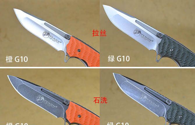 俄罗斯蟒蛇(多色可选) 全 长:21.5cm 刃 长:9.3cm 柄 长:12cm 刃 宽:3cm 刃 厚:3.6mm 刃 材:5Cr13Mov 重 量:248(含包装) 硬 度:56HRC 表 面:石洗/拉丝 柄 材:绿G10/橙G10 柄片(两款任选) 锁 型:一体线锁 包 装:高档纸盒 色 彩:砂光黑柄、砂光橙柄、石洗黑柄、石洗橙柄 备 注:带腰夹