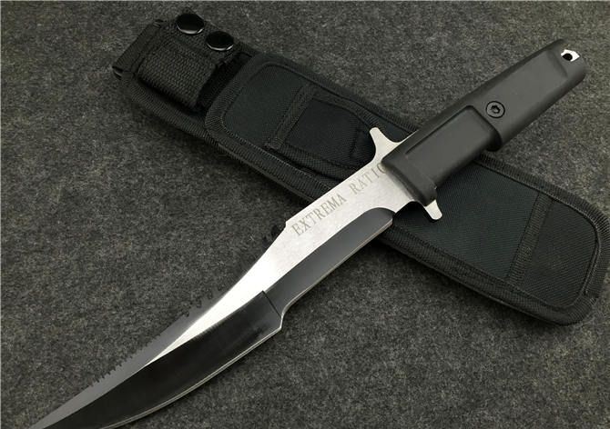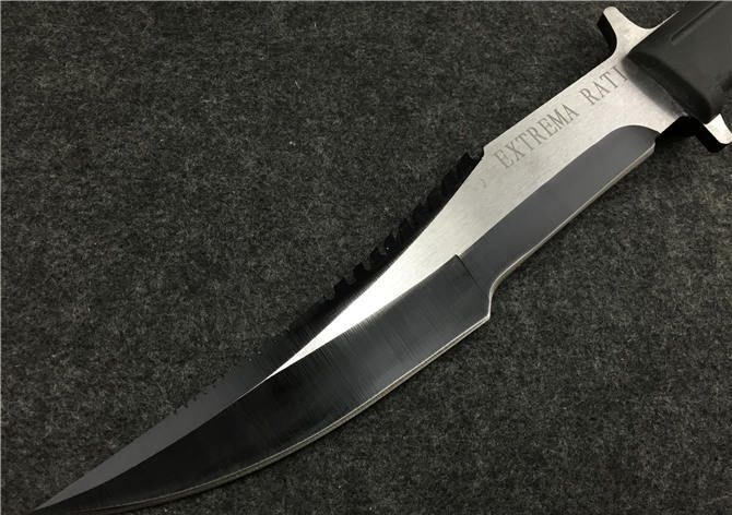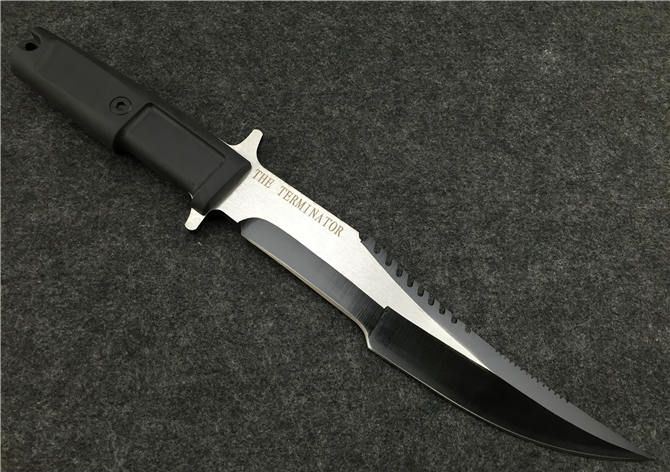 极端终结者直刀 全长:35CM 刃宽:4CM 刃长:22CM 刀重:385G 钢材:5cr17 其他:配战术刀鞘,前端非常锋利可销纸,后端可砍硬物