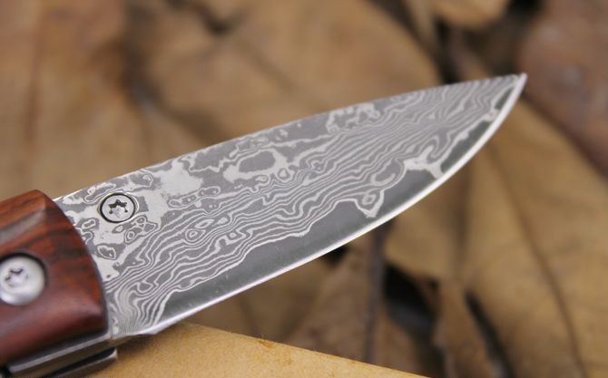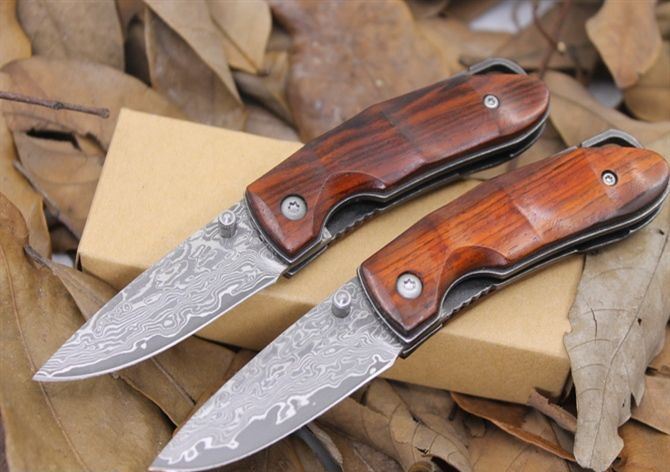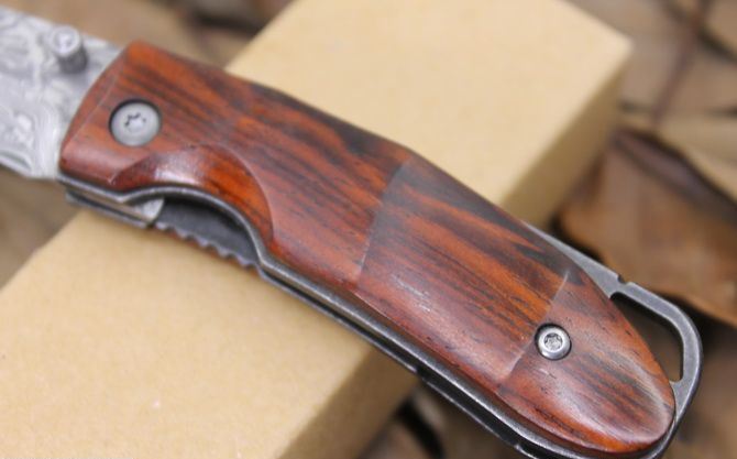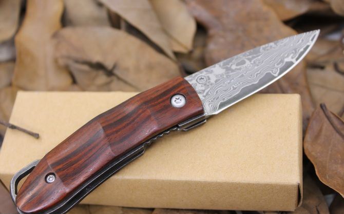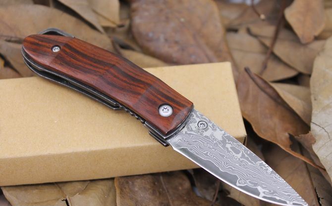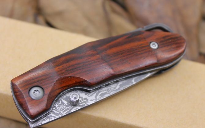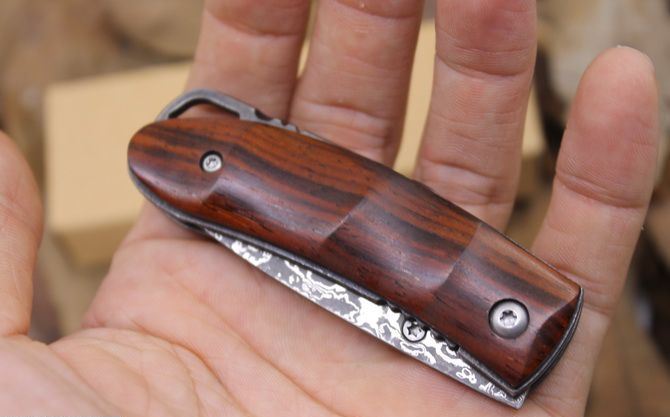 大马士革小山峰折刀 全 长: 13.5cm 刃 长: 5.5cm 柄 长:7.1cm 硬 度: 59-60HRC 刃 厚: 0.2cm 刀 宽: 1.9cm 重 量: 80克含包装 表 面: 纯手工制造 柄 材: 科木黄檀木 刃 材: 大马士革钢 刀刃纹路各异,以实物为准 其 他: 纸盒