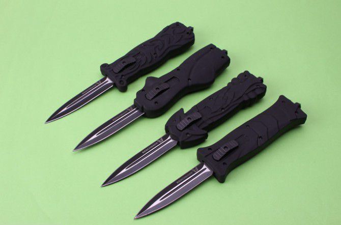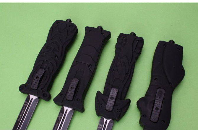 全 长: 23cm 刃 长: 9.4cm 刃 厚: 2.8mm 刃 材: 440 硬 度: 57HRC 刀 重: 162g 毛 重: 213g 表 面: 氧化黑 柄 材: 锌铝合金+ABS 刀 鞘: 尼龙 锁 闭: 直出弹簧刀