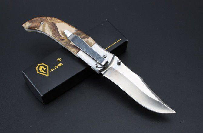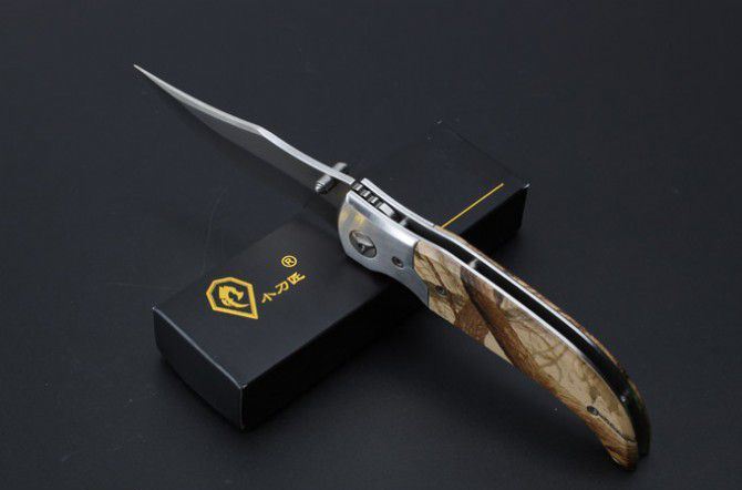 小刀匠ZD01折刀 全 长:205 柄 长:115 刃 厚:3.0 钢 材:7CR17 硬 度:57-58 表 面:钢原色 手 柄:披覆军迷彩 重 量:140克