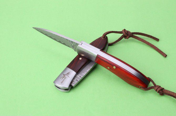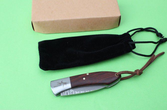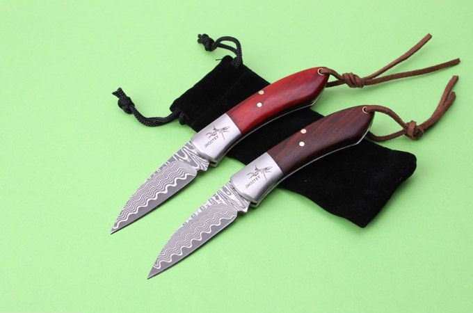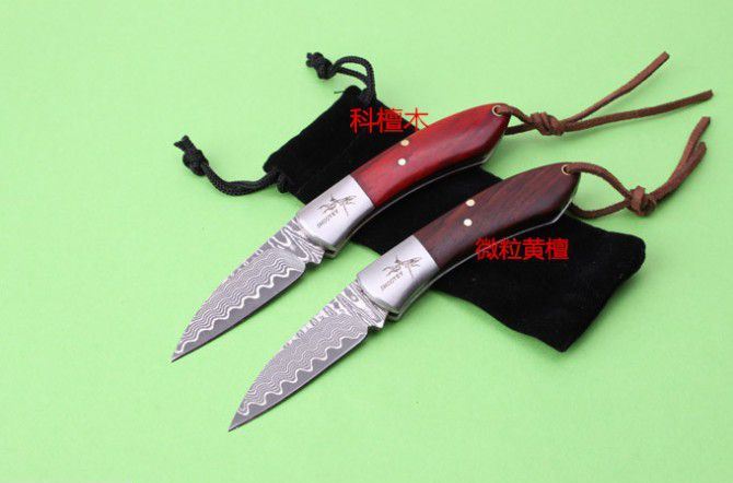 新版螳螂大马士革小贵妃折刀 全 长:135mm 刃 长:50mm 柄 长:80mm 刃 宽:15mm 刃 厚:2.2mm 刃 材:美国进口大马士革 硬 度:58—60HRC 重 量:55g(含包装) 表 面:大马士革原纹 柄 材:科檀木柄和微粒黄檀柄 其 他:配皮袋