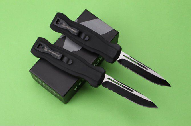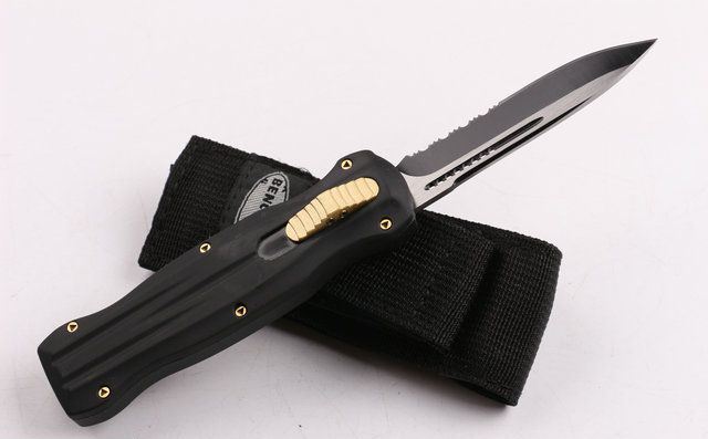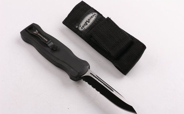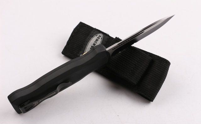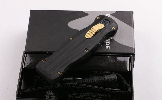 全 长: 22cm 刃 长: 9.2cm 刃 厚: 2.8mm 刃 材: 440 硬 度: 57HRC 刀 重: 291g 毛 重: 401g 表 面: 氧化黑 柄 材: 锌铝合金 刀 鞘: 尼龙 锁 闭: 直出弹簧刀