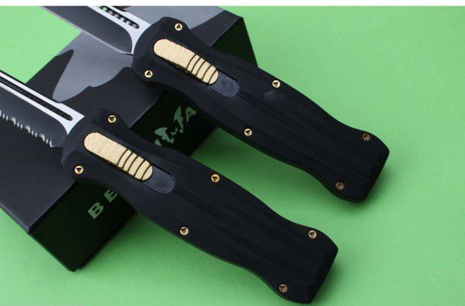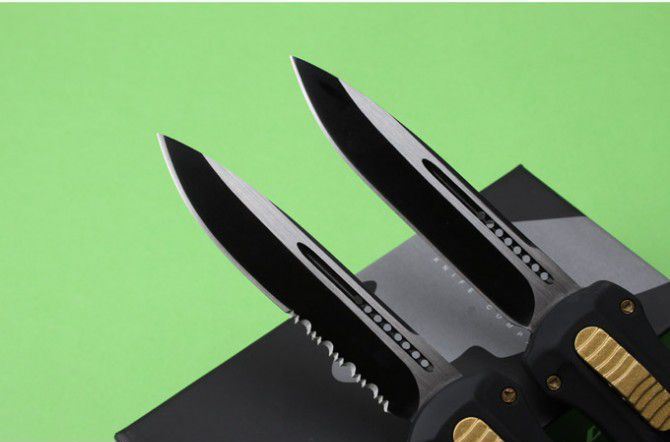 B07蝴蝶刀(单锋全刃、单锋半齿) 全 长: 22cm 刃 长: 9.2cm 刃 厚: 2.8mm 刃 材: 440 硬 度: 57HRC 刀 重: 291g 毛 重: 401g 表 面: 氧化黑 柄 材: 锌铝合金 刀 鞘: 尼龙 锁 闭: 直出弹簧刀
