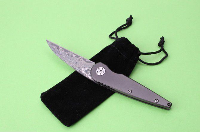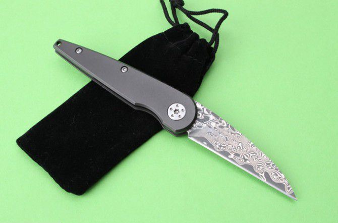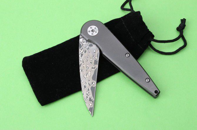千年虫大马士革钛柄折刀