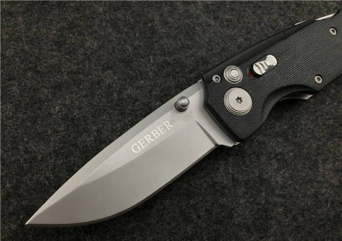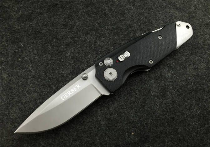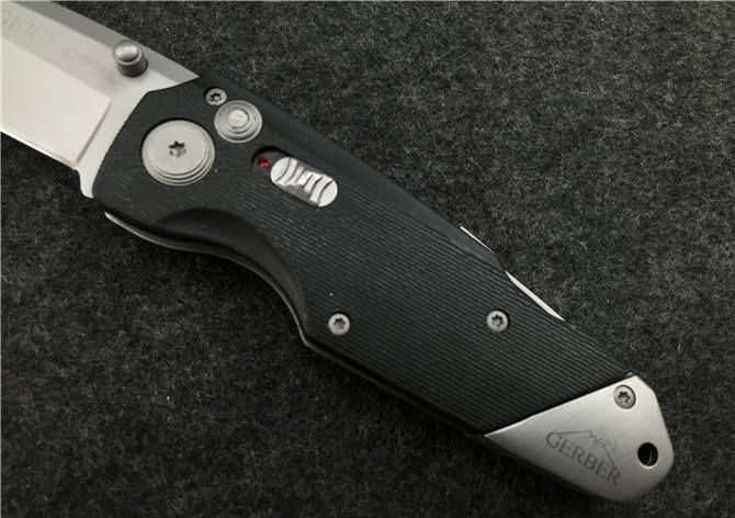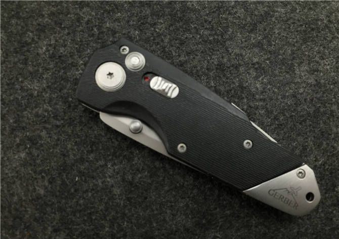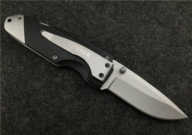戈博户外折刀(出口品质) 全 长:185mm 刃 长:70mm 柄 长:105mm 刃 宽:25mm 刃 厚:3.3mm 刃 材 440A 重 量:138g (含包装) 硬 度:58HRC 表 面 :灰钛 柄 材:钢+G10 其 他:彩盒包装