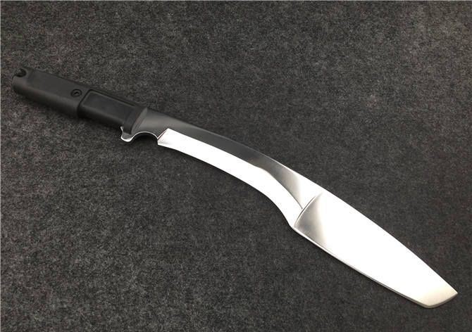极端武力Extrema RatioKH战术砍刀镜光 全 长: 45cm 总刃长: 32cm(第一节刃长:17CM 第二节刃长:15CM) 刃 厚: 6mm 刃 材: 7CR13 硬 度: 58HRC 表 面: 黑钛或者镜光 柄 材: 橡塑 刀 鞘: 尼龙 重 量: 650克