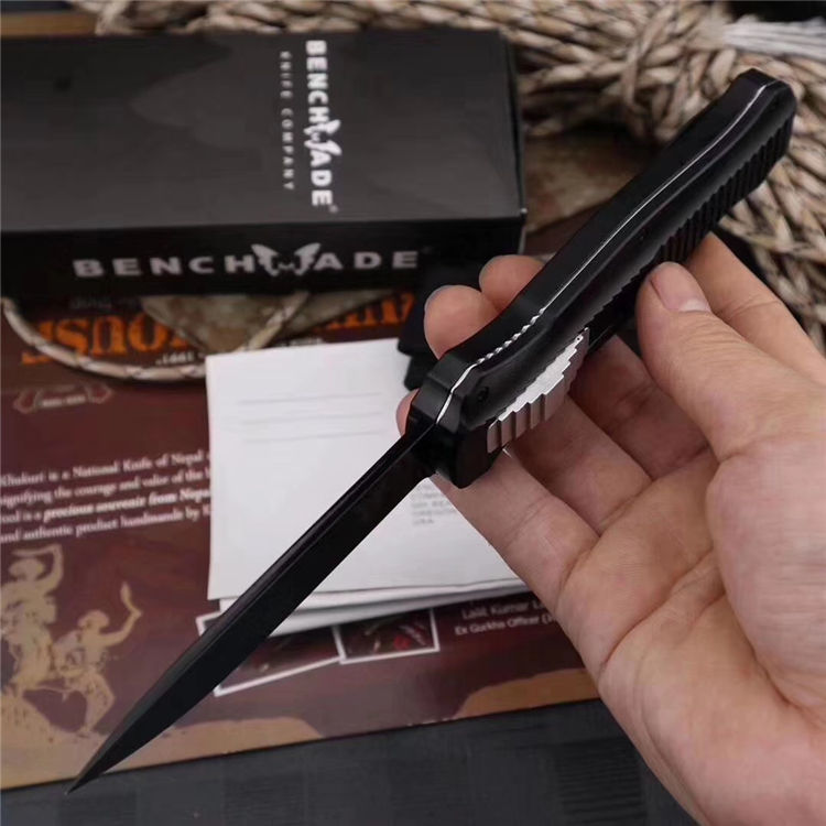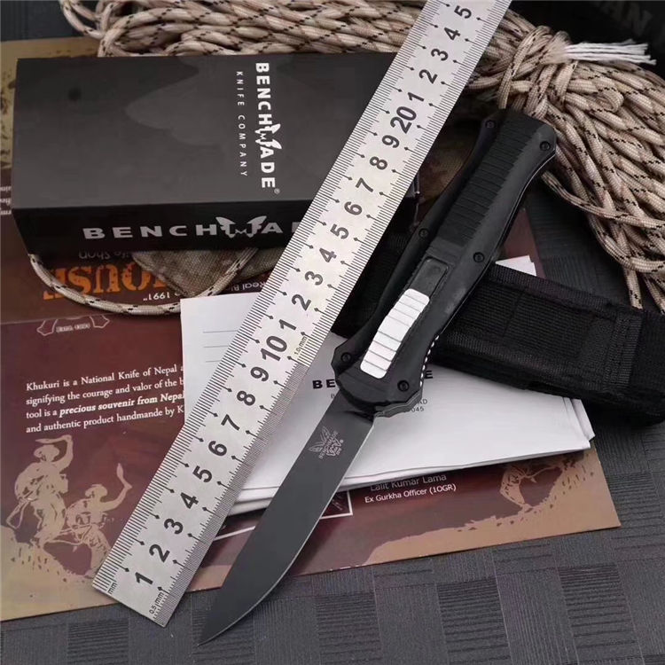 蝴蝶3310单锋直弹刀 品牌:蝴蝶 全长:22.5cm 刃长:9.8cm 刃厚:3.2mm 刃材:S3DV 硬度:60HRC 总重量:205.0克(含包装物) 表面:镀钛 锁闭:弹簧直出 柄才:6061铝材经CNC电脑锣成型,极度精密 刀鞘:尼龙 套