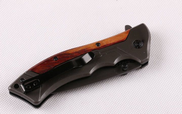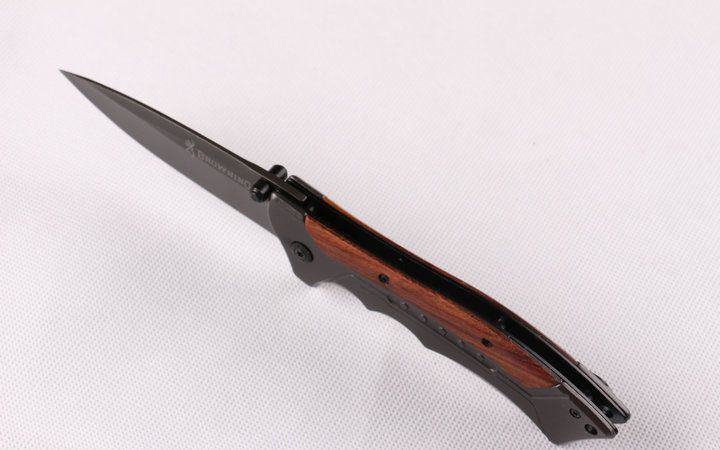 勃朗宁FA24快开折刀 全 长:21.6cm 刃 长:9.5cm 柄 长:12.6cm 刃 宽:2.8cm(最宽处) 刃 厚:2.8mm 刃 材:5CR13MOV 硬 度:56HRC 刀 柄:钢柄+酸枝木 表 面:全钛 重 量:200克 配原厂包装