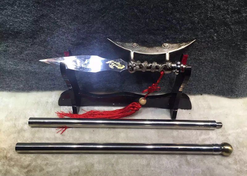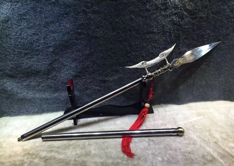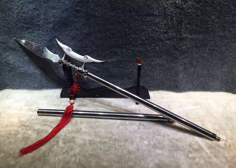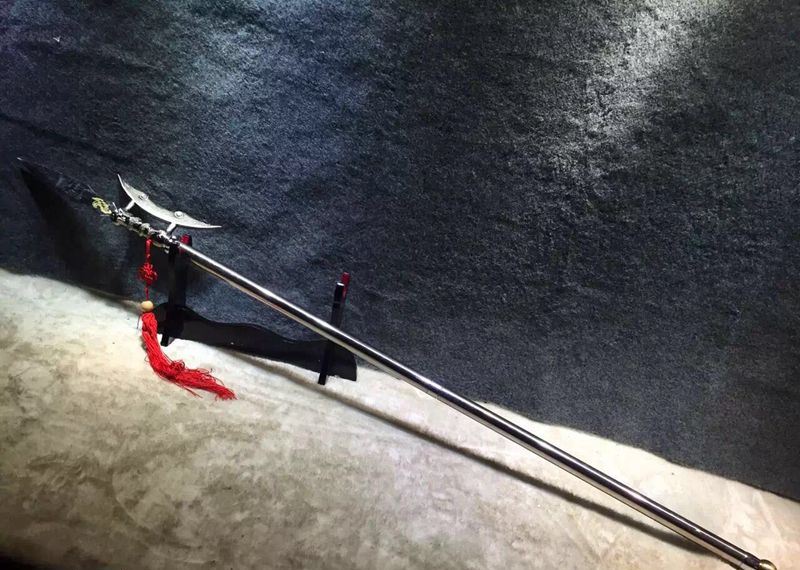 全长:140cm 枪头长:35cm 枪头刃长:21cm 刃宽:4.2cm 不锈钢手工制作工艺精细收藏品