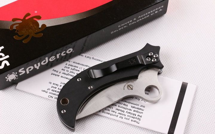 蜘蛛40GP折刀 全 长:177mm 刃 长:65mm 柄 长:110mm 刃 宽:28mm 刃 厚:3.8mm 刃 材:5CR15 重 量:150包装) 硬 度:58HRC 表 面:砂光 柄 材:黑色G10 锁 型:线锁 其 他:配彩盒+说明书
