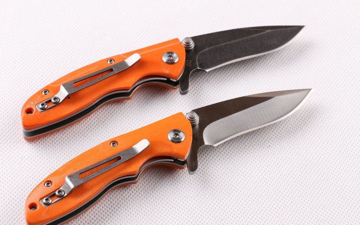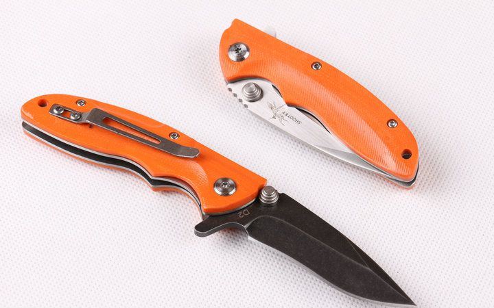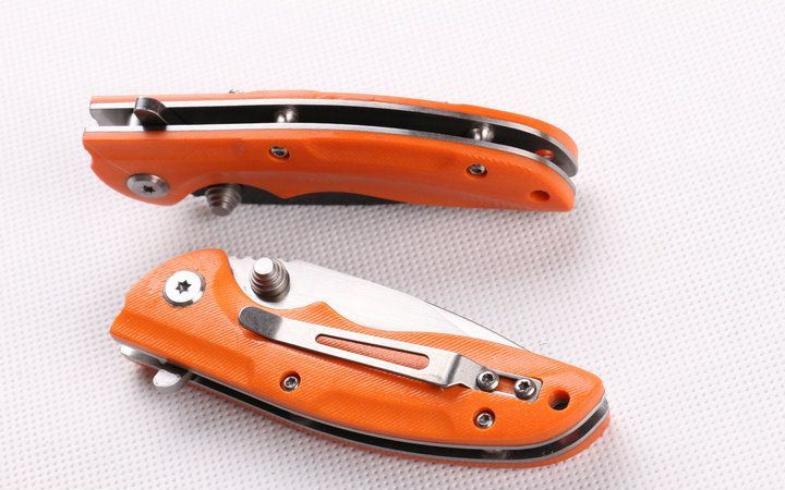 螳螂小士兵(钢刃橙色G10) 全 长:15cm 刃 长:6.3cm 柄 长:9.1cm 刃 宽:2.2cm(最宽处) 刃 厚:2.1mm 刃 材:D2 硬 度:56HRC 刀 柄:G10柄 表 面:精细沙光+黑钛两色任选 重 量:100克 配原厂包装