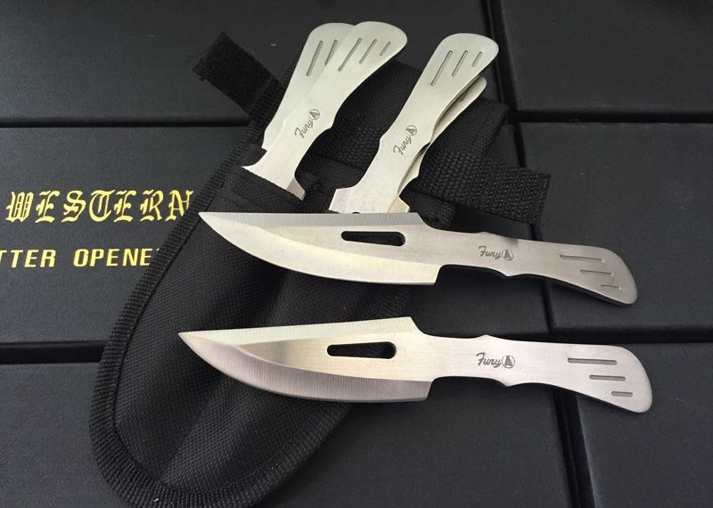 Funy鹰眼单刃飞刀(6支套装) 全长:16 cm 刃长:8.5cm 刃厚:0.3cm 材料:高级不锈钢 硬度:54-56 重量:50克/支, 一套6支装 美国飞镖协会订单产品,经典鹰眼单刃飞刀,线条简练,上手容易,是你飞刀练习的最佳选择!