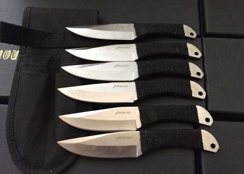 6英寸Aeroblade绳柄飞刀(6支装) 全长:15.6CM 刃长:7.3CM 刃厚:0.3CM 表面:钢本色 重量:45克/支 包装:一套六支 美国飞镖协会设计产品,单刀型绳柄飞刀,上手快