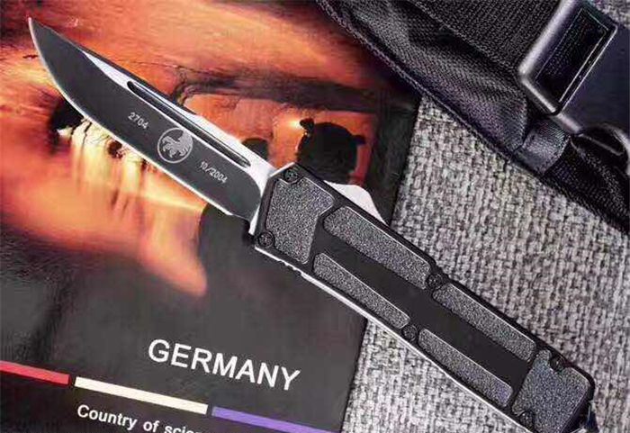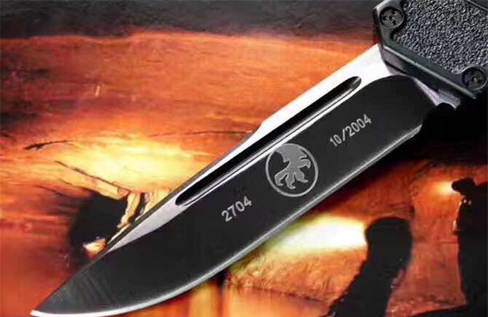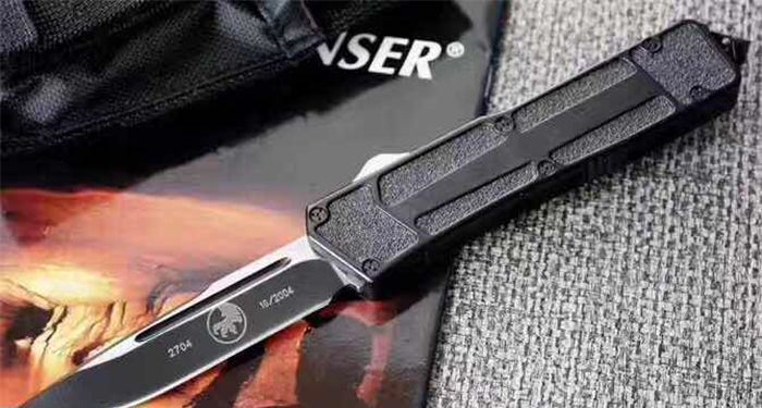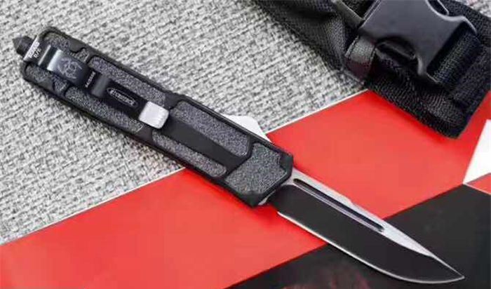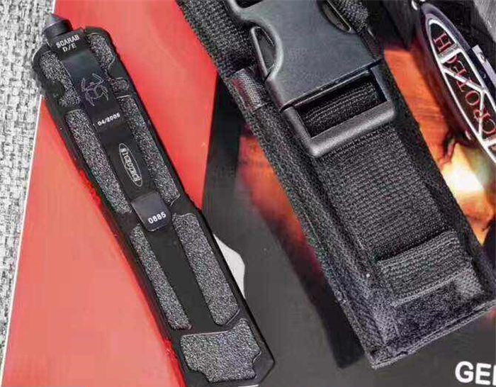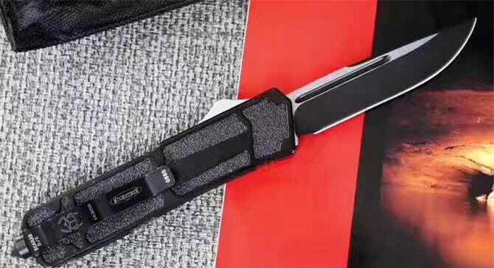 微技术.圣甲虫全刃单锋(黑色) 全长:21.3cm(含尾锥长度) 刃长:8.5cm 刃厚:2.6mm 刃材:440 硬度:57HRC 总重量:299.0克(含包装物) 表面:黑白拉丝(刀刃) 柄材:锌铝合金 刀鞘:尼龙 锁闭:弹簧直出 备注:带背夹