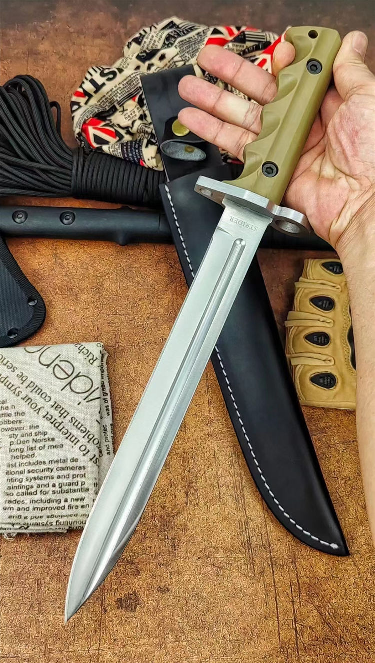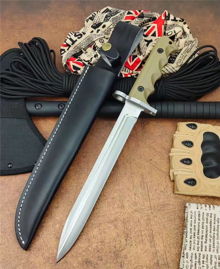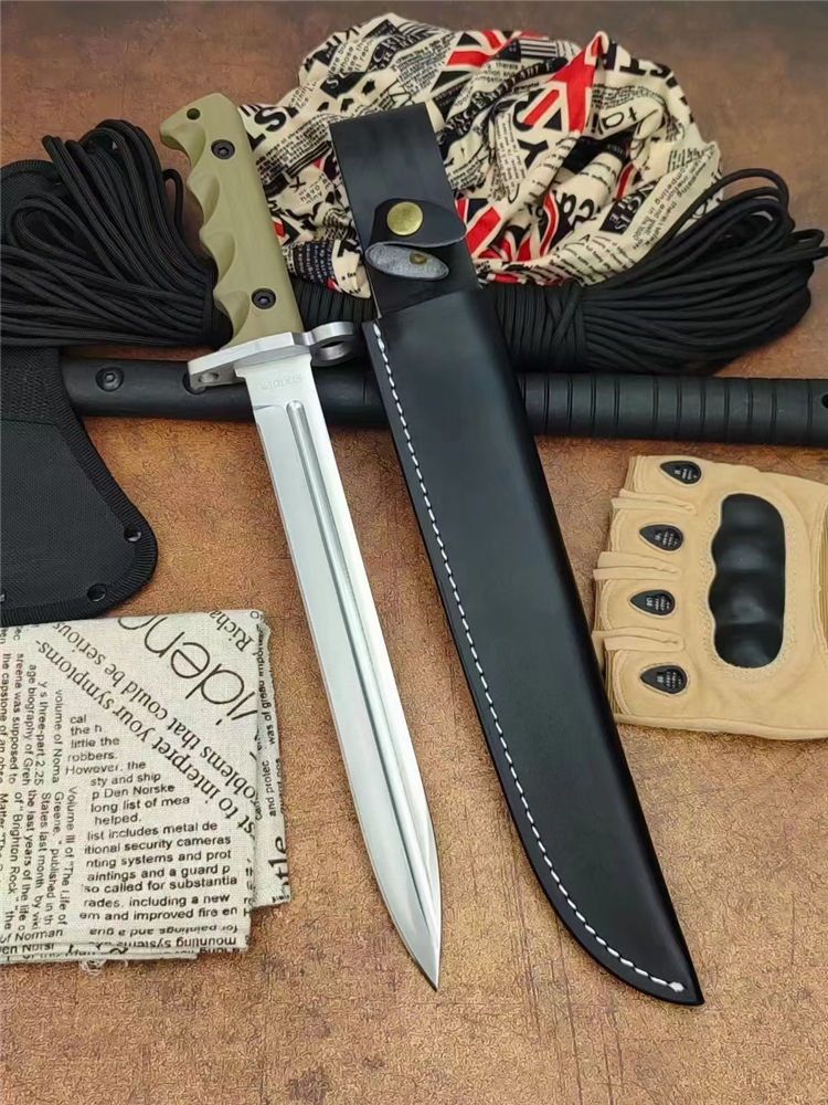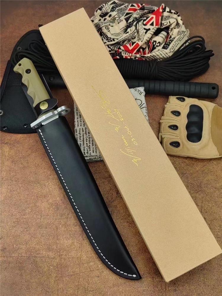 米克AK47直刀(砂光、金版) 全长:39cm 刃长:26.2cm 柄长:13.6cm 刃厚:0.60cm 刃宽:2.8cm 刃材:7Cr15Mov 柄材:橡塑 硬度:58HRC 净重:422克 毛重:704克 表面处:沙光+金色 其他:配午皮套+硬纸盒