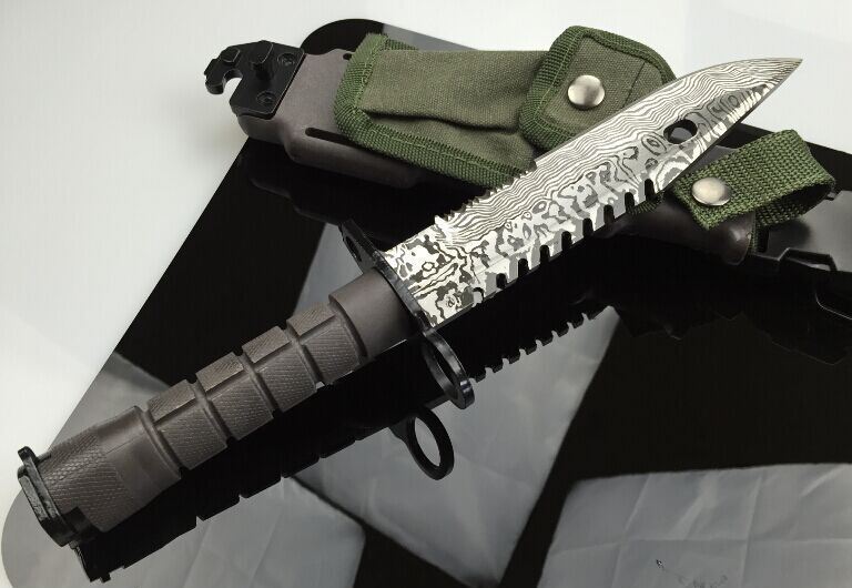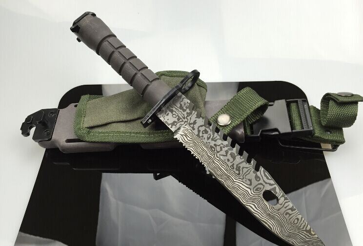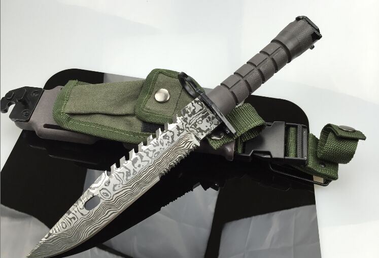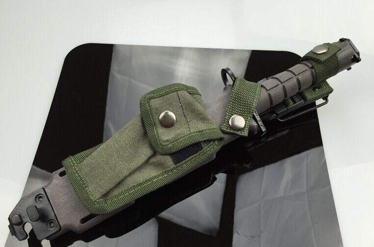 精仿D80激光纹半齿直刀 全长:32.5CM 刃长:20CM 柄长:12.3CM 身最大宽度:3.8CM 刀厚:0.58CM 刃面:激光纹 毛重: 820克(含刀鞘) 钢材: 5CR15钢 硬度:57 刀柄:绝缘强化塑胶 刀鞘:绝缘强化塑胶