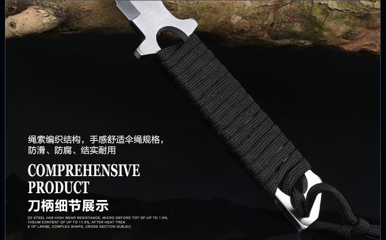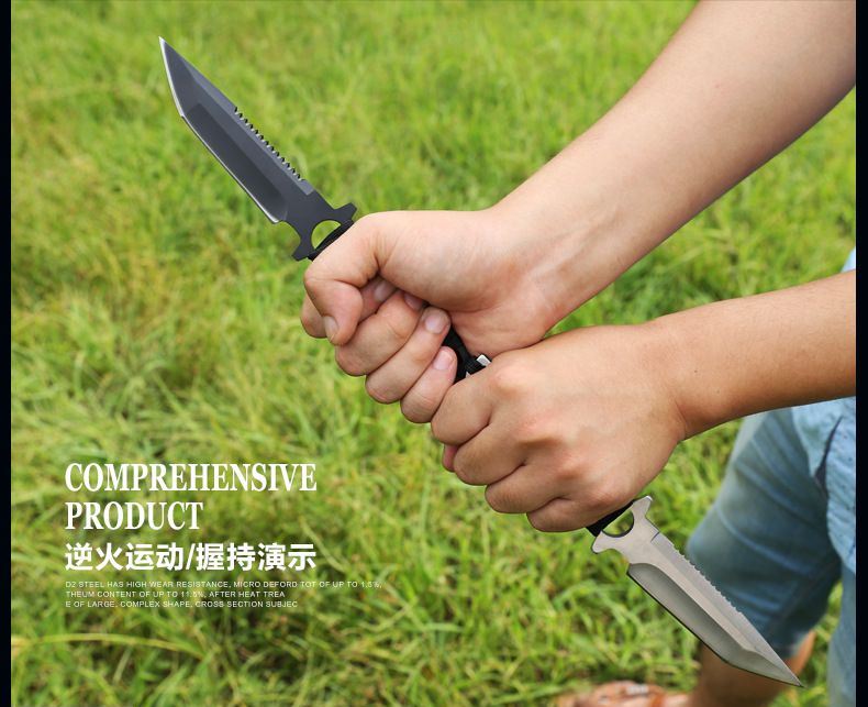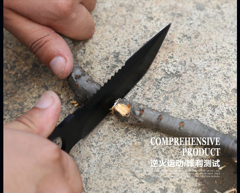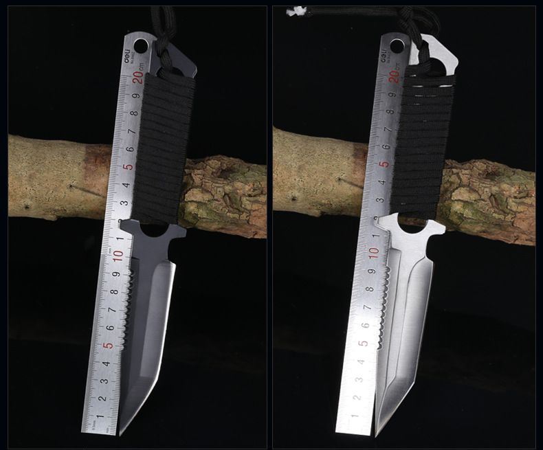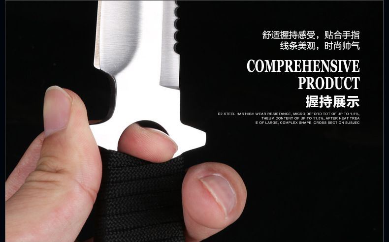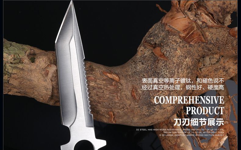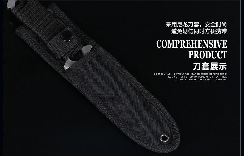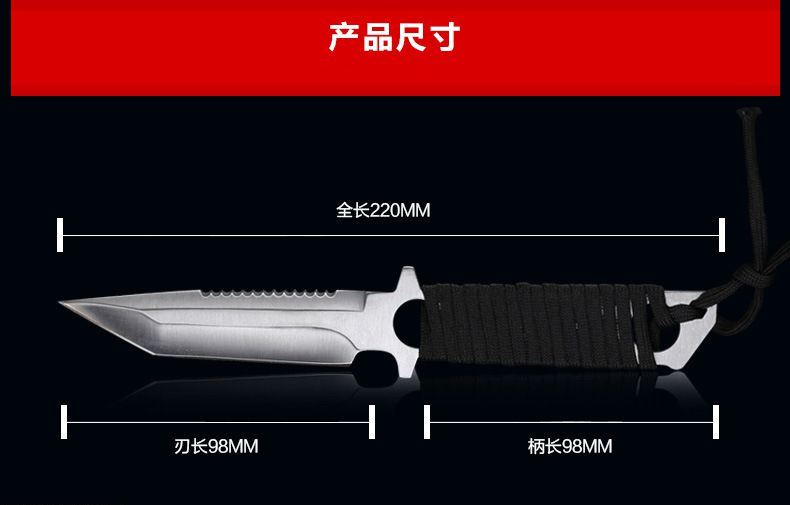 总长: 22CM 刃长:9.8CM 柄长:12.5CM 刀宽:2CM 刃材:3Cr17不锈钢 硬度:58HRC 重量:200G 刃厚:0.38 刀鞘:尼龙套 包装:白盒 适用范围:专为实用性而设计,无论是水下还是陆地,或是丛林都会得心应手
