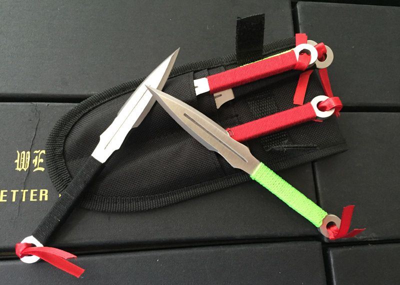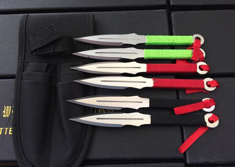 三色双刃彩镖(六支装) 全长:15.8CM 开刃长:5.8CM 刃厚:5MM 重量:60克/支 6支套装 三色双刃镖!5MM纯钢制造!刃尖强度大,绳柄,手感一流