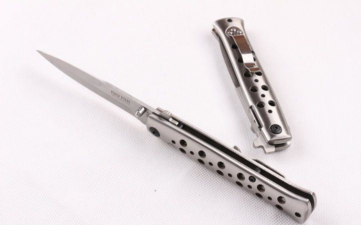 冷钢AF21折刀 全 长:22cm 刃 长:9.2cm 柄 长:12.3cm 刃 宽:1.9cm(最宽处) 刃 厚:2.9mm 刃 材:3CR13 硬 度:56HRC 刀 柄:沙光钢柄 表 面:沙光 重 量:150克 配原厂包装