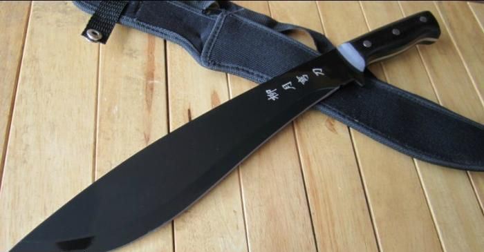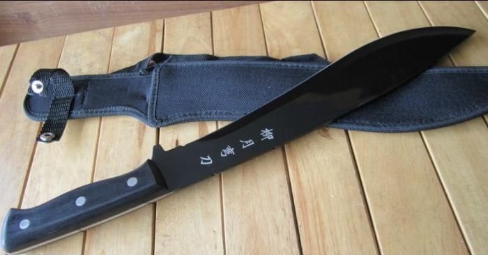 柳月弯刀(亚光黑版) 全长:41.2CM 刃长:27CM 柄长:12CM 刃材:喷漆 刃厚:0.4MM 结构:全龙骨 柄材:黑木柄 硬度:55HRC 刀鞘:尼龙刀鞘