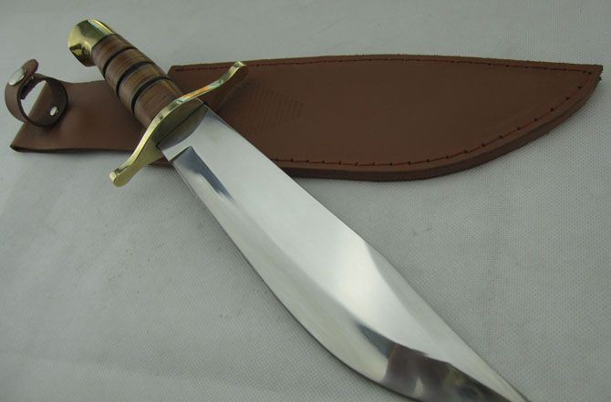 全 长:36.0cm 刃 长:22.0cm 柄 长: 12.5cm 刃 宽:5.0cm(最宽处) 刃 厚:4.8mm 刃 材:440不锈钢 硬 度:58HRC 刀 柄:皮柄+铜刀挡 表 面:镜光 重 量: 660.0克 备 注: 带真皮套