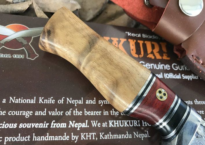 翼虎进口大马土革直刀 全 长: 15.6cm 刃 长: 6.7cm 柄 长: 8.9cm 刃 宽: 2.1cm(最宽处) 硬 度: 60HRC 刃 厚: 0.27cm 柄 材: 电木+科檀+白影 重 量: 100克(含刀套) 刃 材: 进口大马士革钢 其 他: 刃口锋利,真皮套