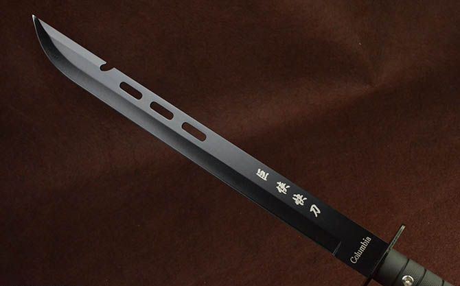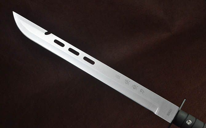 全 长:50.5cm 刃 长:35cm 柄 长:12cm 刃 宽:3.2cm 刃 厚:3mm 刃 材:3Cr13Mov 重 量:350g(含包装) 硬 度:56HRC 表 面:砂光/发黑 柄 材:橡塑 其 他:配皮套