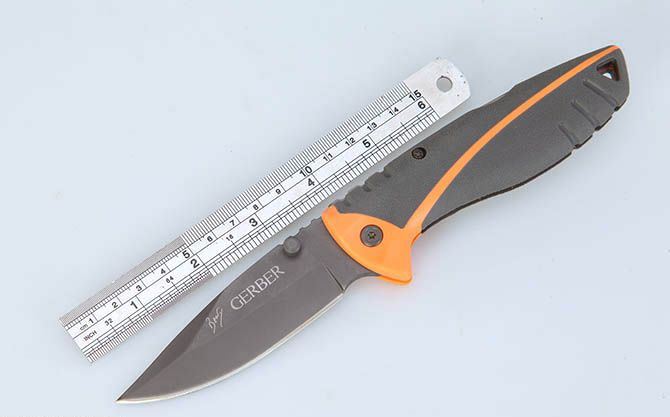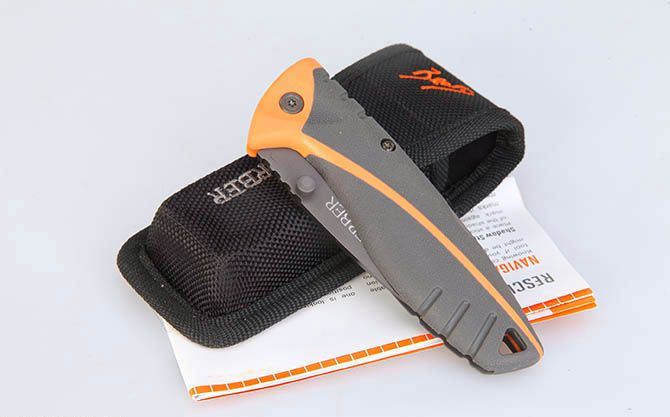 戈博贝尔4790户外折刀 全 长:21.5cm 刃 长:8.5cm 刃 宽:3cm(最宽处) 柄 长:12.3cm 刃 厚:3.8mm 刃 材:420 柄 材:橡塑(手感柔软舒适、防滑) 硬 度:54HRC 表 面:镀钛 重 量:188克(含包装) 锁 定: 背锁 包 装:尼龙套、彩盒、说明书