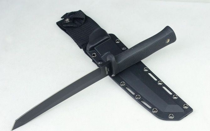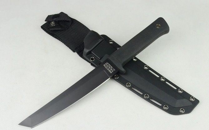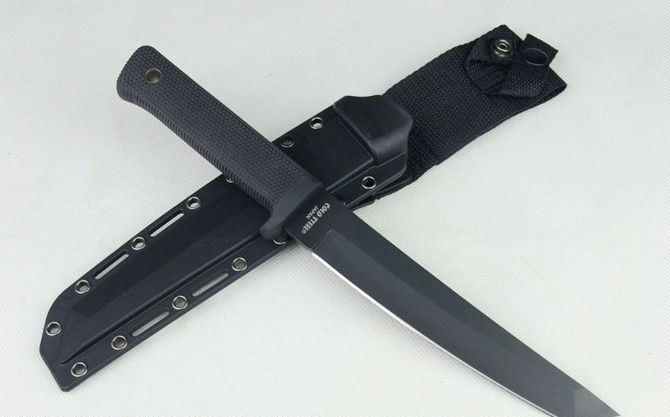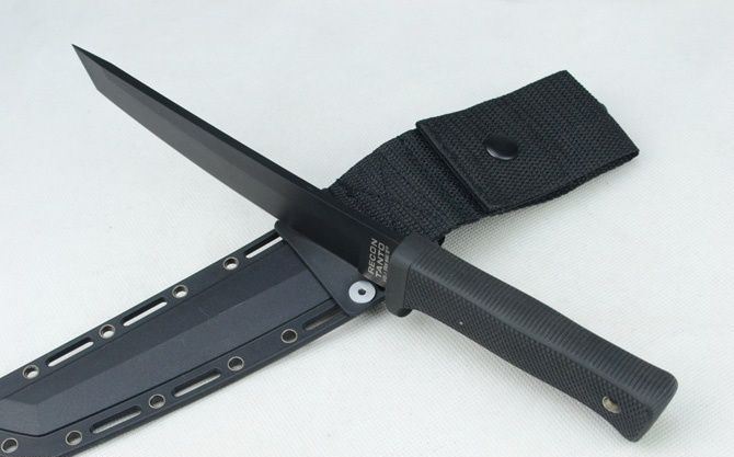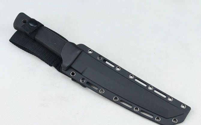 冷钢三美小武士刀(黑刃硬套版) 全 长:302mm 刃 长:163mm 柄 长:120mm 刃 宽:30mm 刃 厚:5mm 刃 材:3Cr13 重 量:331g(含包装) 硬 度:56HRC 表 面:发黑 柄 材:ABS 其 他:ABS战术刀套
