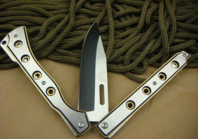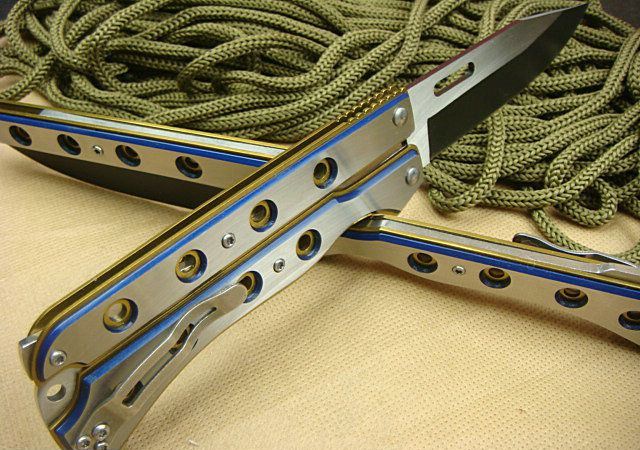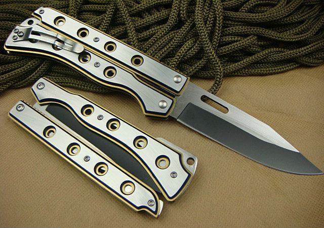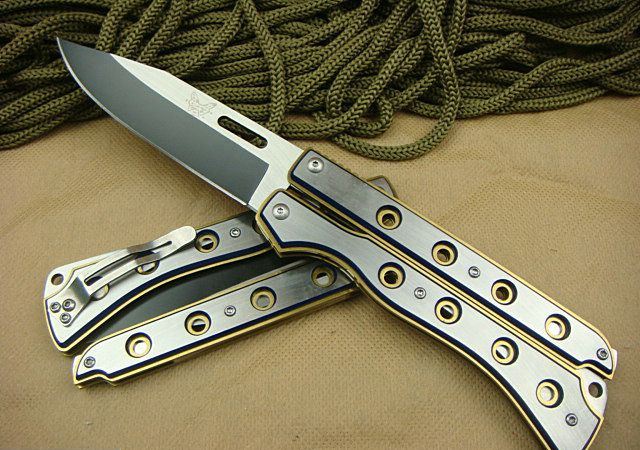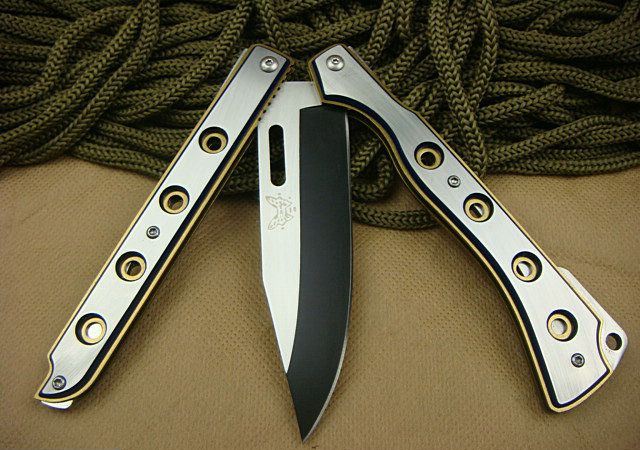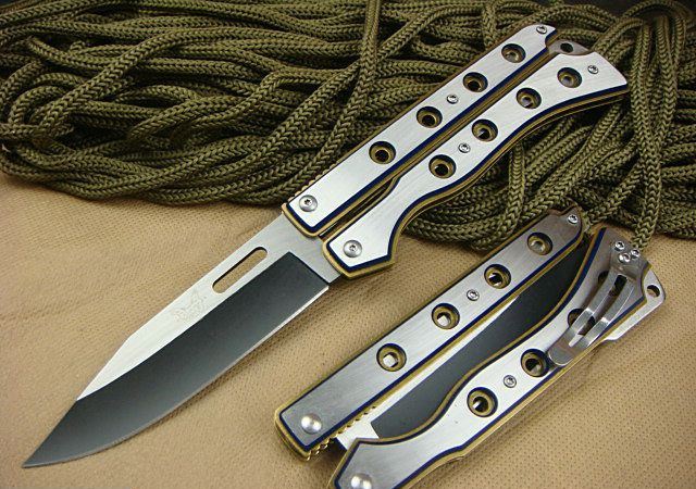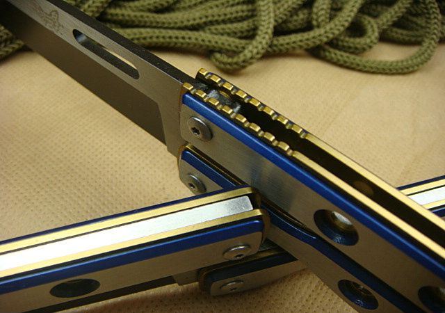 幻影蝴蝶刀J1686 全 长: 20.6cm 刃 长: 9.0cm 刃 宽: 2.5cm(最宽处) 闭 合: 11.5cm(柄长) 刃 材: 440C 硬 度: 57 表 面: 幻彩加沙光,款式炫目. 刃 厚: 0.22cm 柄 材: 全钢 净 重: 180克 包 装:原装纸盒 品 质: 出口高品质,贴牌代工。