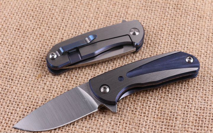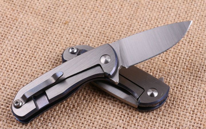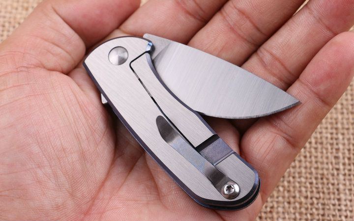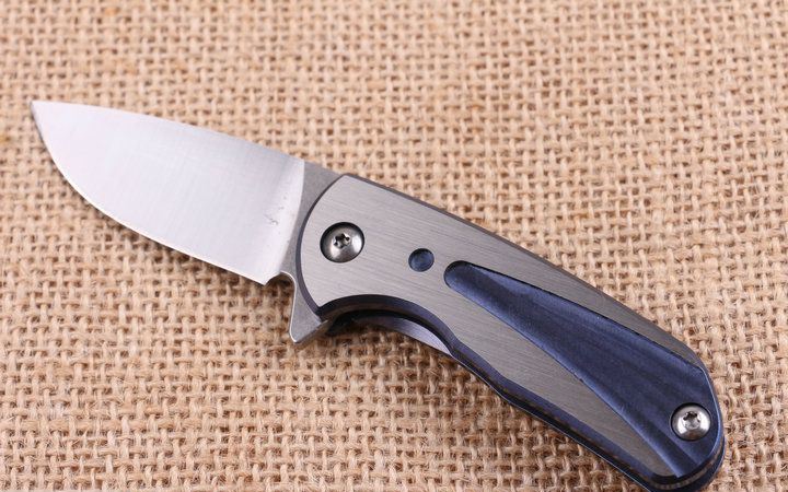 蓝精灵钛柄轴承快开折刀 全 长:13.1cm 刃 长:5.5cm 柄 长:7.5m 刃 宽:2.2cm 刃 厚:3.1mm 刃 材:D2 重 量:130g(含包装) 硬 度:58HRC 表 面:砂光 柄 材:钛合金 锁 型:线锁,内置轴承