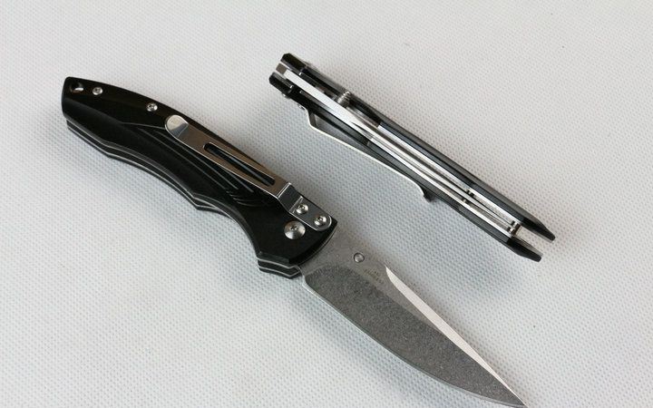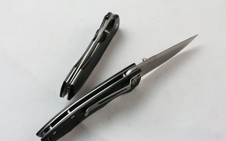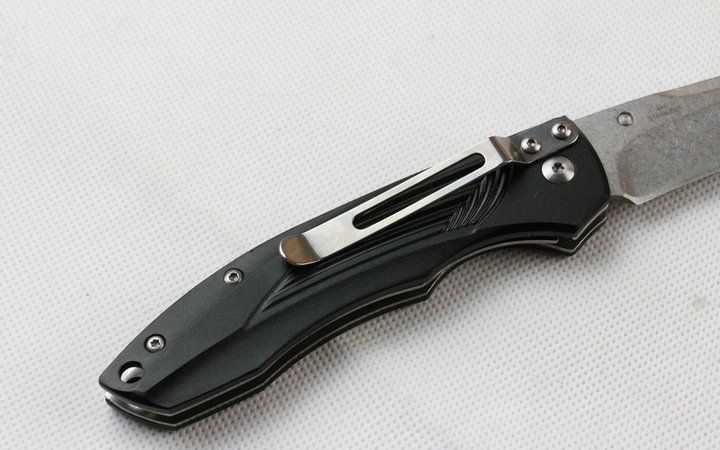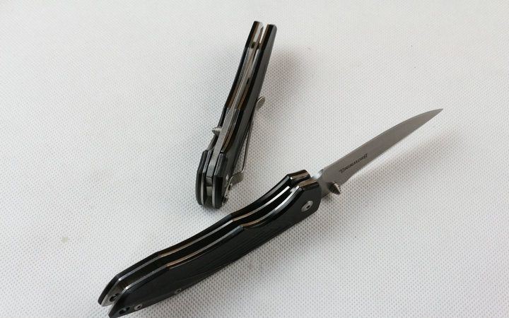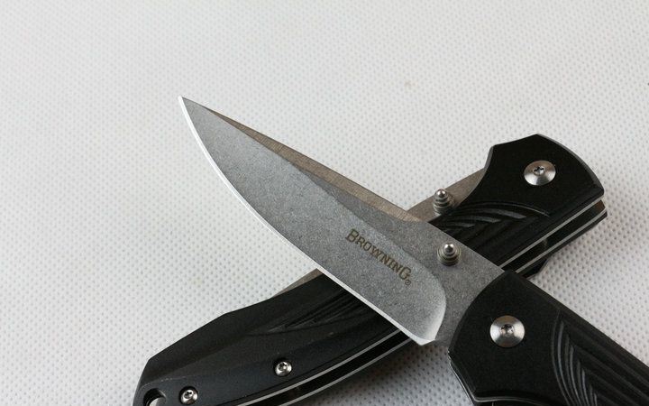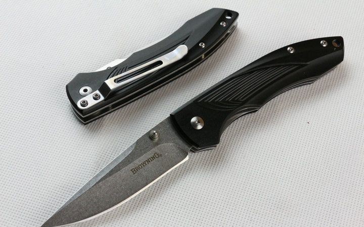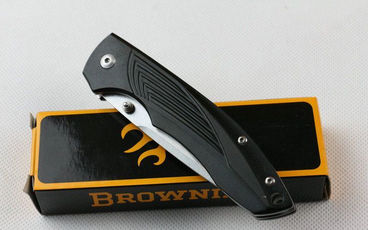 勃朗宁小战神折刀(黑钛) 全 长:20cm 刃 长:8.5cm 刃 宽:2.3cm(最宽处) 刃 厚:2.9mm 柄 长:11.5cm 表 面: 石洗纹 刃 材: 440C 硬 度: 57HRC 柄 材: 扎纹铝+钢片 重 量:100克(含彩盒子) 锁 闭:线锁 备 注:带腰夹