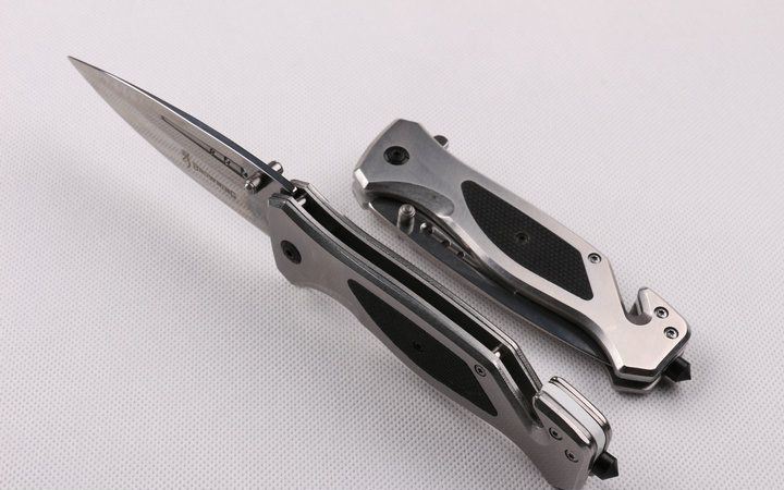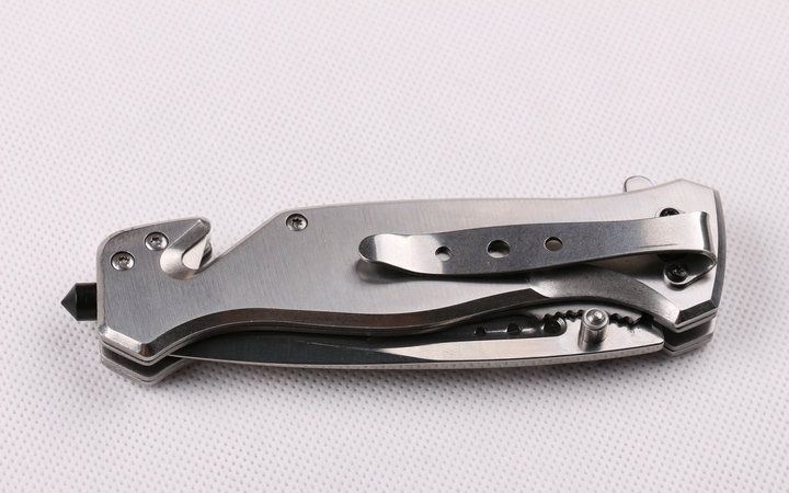 勃朗宁DA74快开折刀 全 长:21.5cm 刃 长:9.0cm 刃 宽:2.8cm(最宽处) 刃 厚:2.9mm 柄 长:12.2cm 表 面: 镜光 刃 材: 440C 硬 度: 57HRC 柄 材: 全钢本色镶黑G10片 重 量:200克(含彩盒子) 锁 闭:线锁 备 注:带腰夹+撞击玻璃器