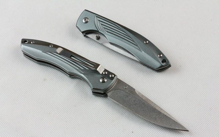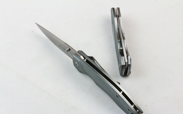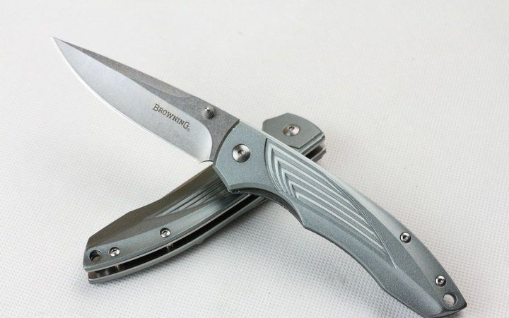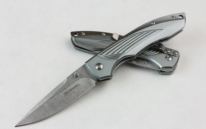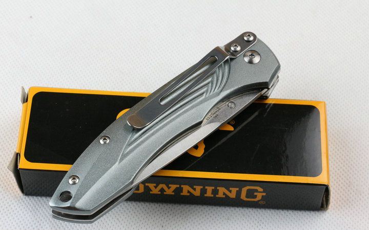 勃朗宁小战神折刀(灰钛) 全 长:20cm 刃 长:8.5cm 刃 宽:2.3cm(最宽处) 刃 厚:2.9mm 柄 长:11.5cm 表 面: 石洗纹 刃 材: 440C 硬 度: 57HRC 柄 材: 扎纹铝+钢片 重 量:100克(含彩盒子) 锁 闭:线锁 备 注:带腰夹
