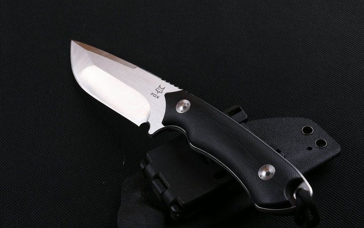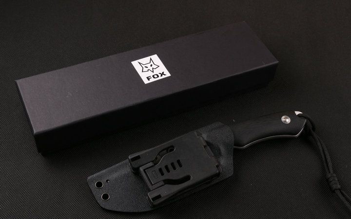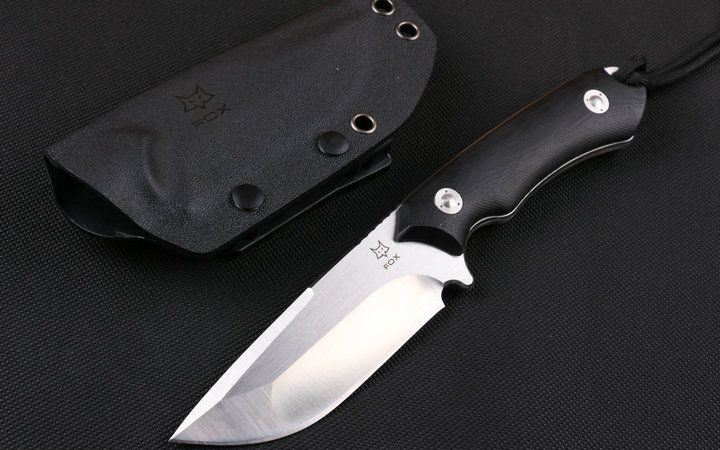 狐狸FOX小白鲨I号 全 长:22.5cm 刃 长:10.5cm 柄 长:12.3cm 刃 宽:3.5cm(最宽处) 刃 厚:5.0mm 刃 材:D2(真空热处理) 硬 度:60-61HRC 刀 柄:CNC黑G10 表 面:精细拉丝 重 量:450克(含包装) 备 注:原厂礼品盒,优质真K鞘