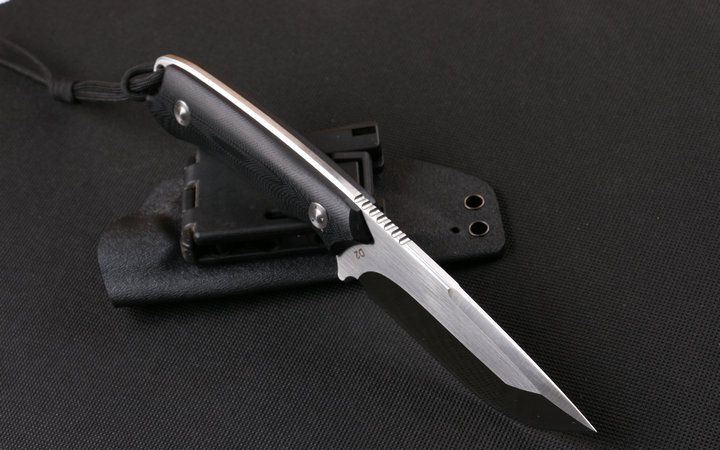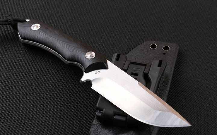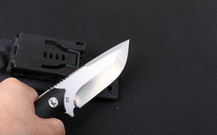 全 长:22.5cm 刃 长:10.5cm 柄 长:12.3cm 刃 宽:3.5cm(最宽处) 刃 厚:5.0mm 刃 材:D2(真空热处理) 硬 度:60-61HRC 刀 柄:CNC黑G10 表 面:精细拉丝 重 量:450克(含包装) 备 注:原厂礼品盒,优质真K鞘