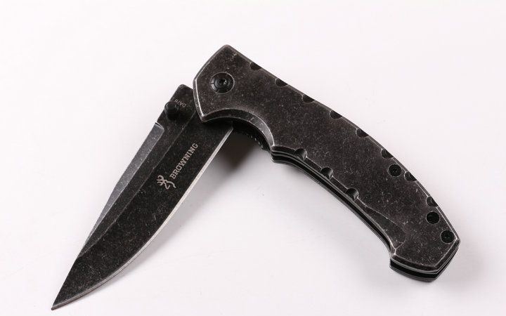 勃朗宁DA78快开折刀 全 长:22cm 刃 长:10.2cm 刃 宽:2.8cm(最宽处) 刃 厚:3.7mm 柄 长:12.5cm 表 面: 石洗+黑钛 刃 材: 440C 硬 度: 57HRC 柄 材: 全钢片 重 量:250克(含彩盒子) 锁 闭:线锁 备 注:带腰夹