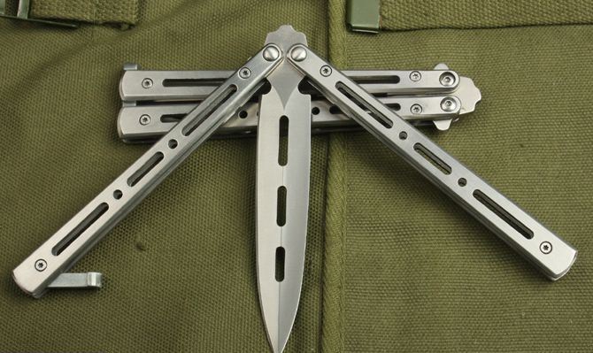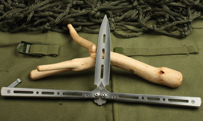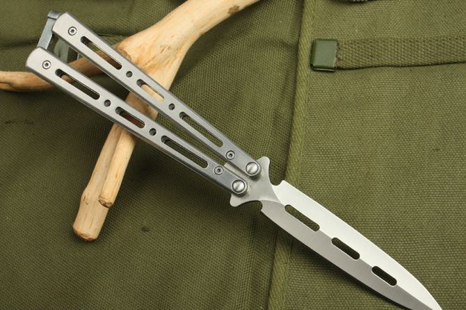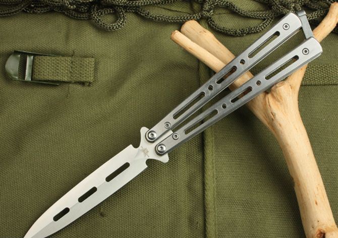 蝴蝶C28S甩刀(砂光) 全 长:22.5cm 刃 长:9.5cm 柄 长: 12.3cm 刃 宽:1.8cm(最宽处) 刃 厚:2.7mm 刃 材:420 硬 度:52HRC 刀 柄:钢柄 表 面:砂光 重 量: 140.0克