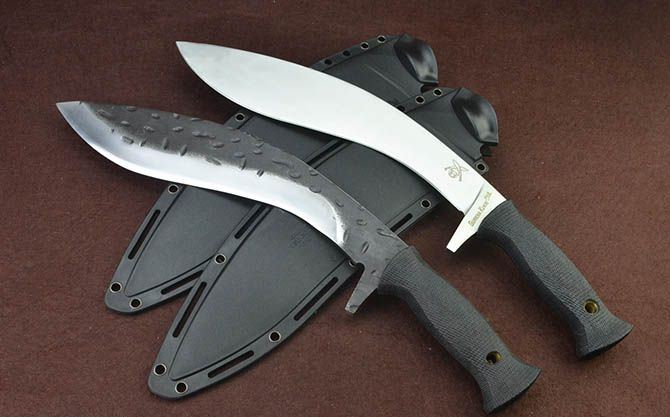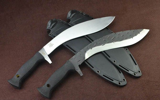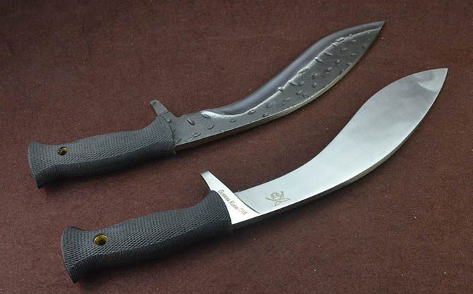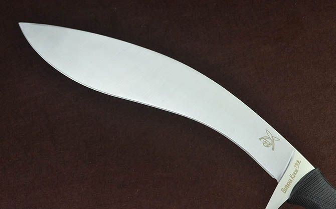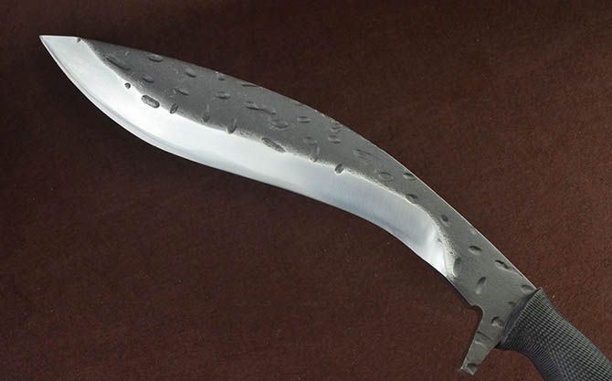 护手版冷钢39LGKI库克瑞狗腿(砂光、锻黑) 全 长:43cm 刃 长:30.5cm 刃 宽:5.8m(最宽处) 刃 厚:7.8/8.8mm 柄 长:13cm 表 面: 砂光/酸洗 刃 材: 7Cr17 硬 度: 59HRC 柄 材: 钢头+橡胶 重 量:900/1200克(含包装) 包 装:硬鞘、彩盒