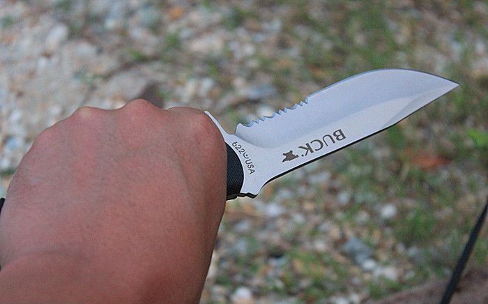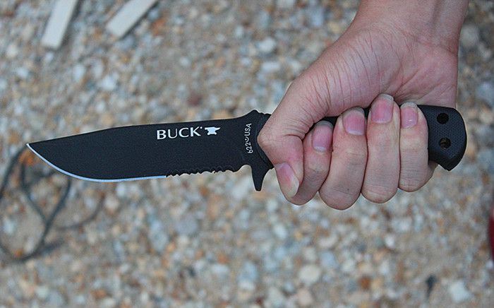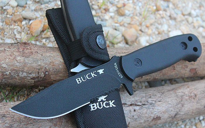 巴克226小直刀 刀刃:9.5 cm 总长:21 cm 钢材:420HC 表面珠喷砂饰面 厚度:0.356cm 重量:187.1 g 刀柄:倒模注塑尼龙 刀鞘:尼龙