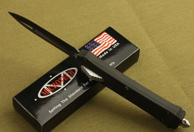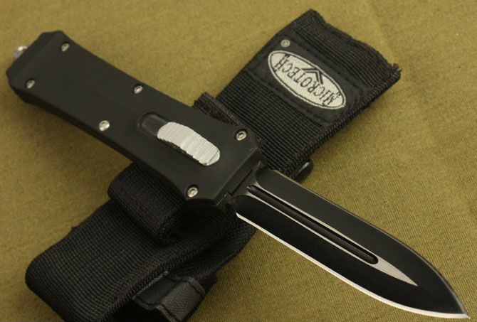 全 长: 24.2cm 刃 长: 9.7cm 刃 厚: 3mm 刃 材: 440 硬 度: 57HRC 刀 重: 245g 毛 重: 390g 表 面: 氧化黑 柄 材: 锌铝合金 刀 鞘: 尼龙 锁 闭: 直出弹簧刀