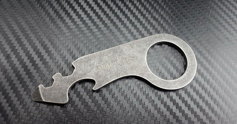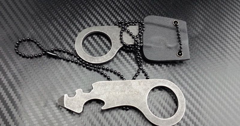shadow影子战术功能开瓶器 全长:8.9CM 材料:不锈钢 刀鞘:Kydex 重量:45g shadow影子战术颈用工具刀,集合开瓶器、一字螺丝刀,尺子 ,两个六角扳手等多功能, 配备 Kydex鞘和长13英寸的珠链,柄尾有大绳孔,使用非常方便