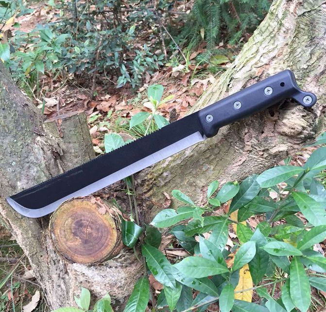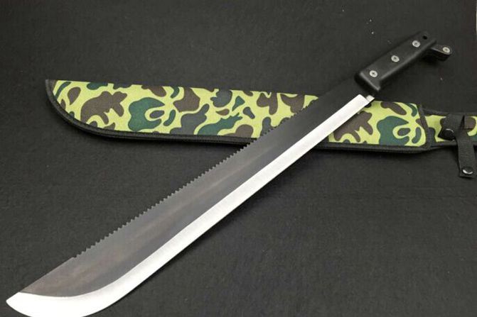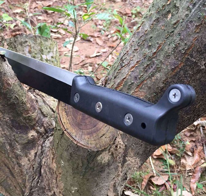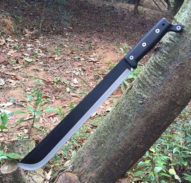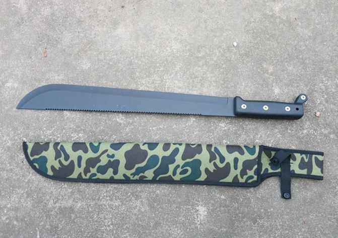 背齿开拓者野营刀 全 长:54CM 刃 长:42CM 刃 厚:3.5MM 刃 材:420不锈钢 硬 度:57HRC 重 量:580g 表 面:电泳 柄 材:ABS 刀 鞘:尼龙 种 类:黑白刃和全黑(购买时请注明种类)